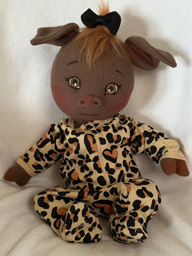 Her golden brown eyes are hand-painted with fabric paints.